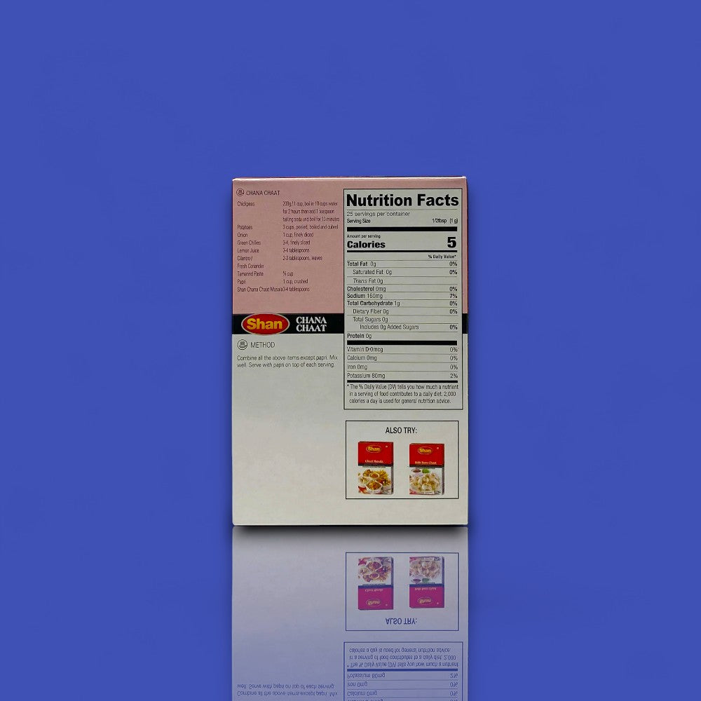 Shan Chana Chaat Mix (50 g) brings the lively, tangy spirit of South Asian street food right to your plate. A zesty blend of dried mango, cumin, chili, and black salt, it turns simple chickpeas into a bold, flavorful snack — perfectly balanced with spice, sourness, and crunch.