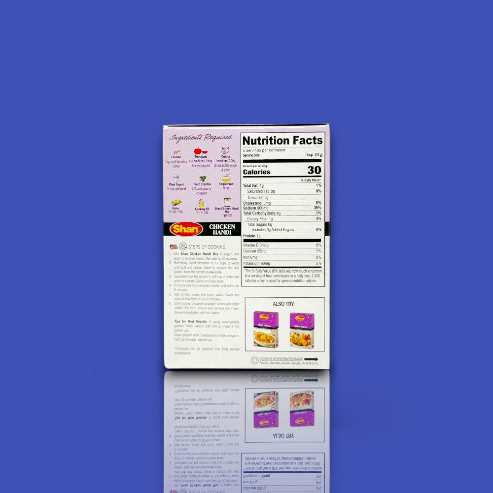 Shan Chicken Handi Mix (50 g) brings the rich, creamy flavors of traditional clay-pot cooking straight to your kitchen. Blended with aromatic spices like coriander, cumin, cardamom, and fenugreek, it creates a velvety tomato-and-cream curry that coats tender chicken with irresistible flavor and warmth.