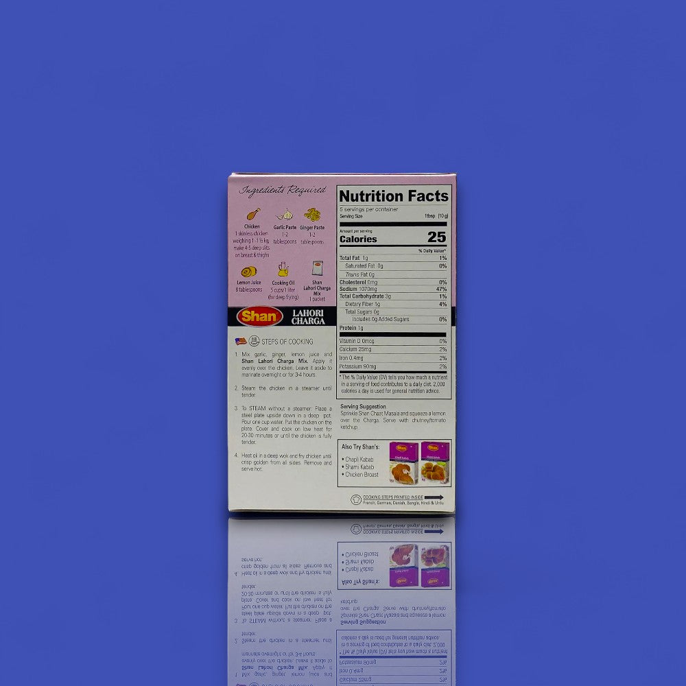 Shan Lahori Charga Mix (50 g) brings the bold, smoky, and mouthwatering flavors of Lahore’s famous street-style chicken straight to your home. Blended with chili, cumin, coriander, and tangy lemon, this mix helps you create juicy, spiced chicken that’s crispy on the outside, tender inside, and bursting with authentic desi flavor.