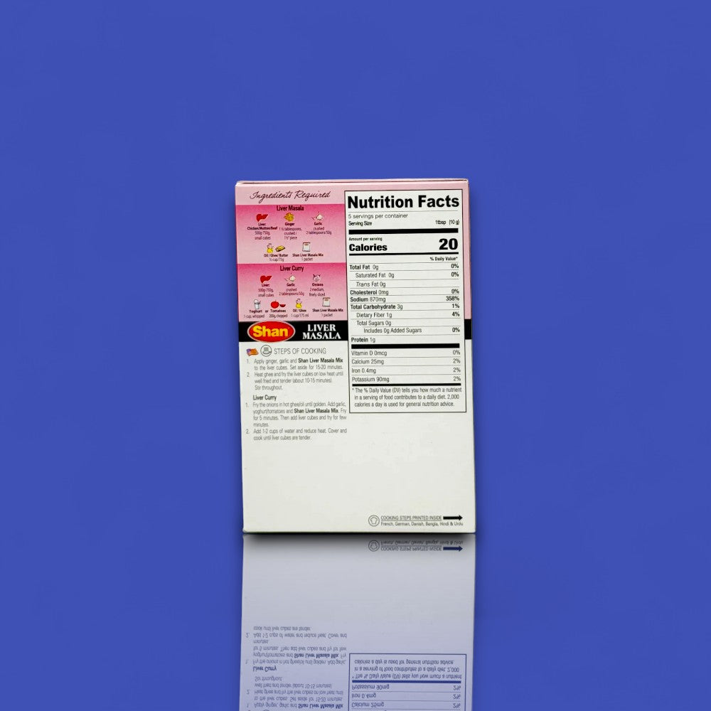 Shan Liver Masala (50 g) brings bold, hearty flavor to your kitchen with a perfectly balanced mix of spices crafted especially for liver dishes. Blended with red chili, cumin, coriander, and black pepper, it creates a rich, spicy gravy that complements the tenderness of chicken or mutton liver full of warmth, aroma, and authentic taste.