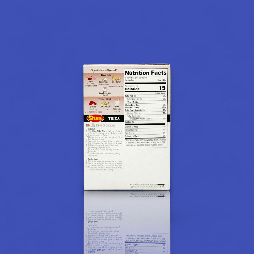 Shan Tikka Mix (50 g) delivers the fiery, smoky essence of classic South Asian barbecue right to your plate. With a perfect balance of chili, cumin, garlic, and lemony tang, this blend infuses your chicken or meat with bold, mouthwatering flavor that’s as authentic as a street-side grill in Karachi or Lahore.