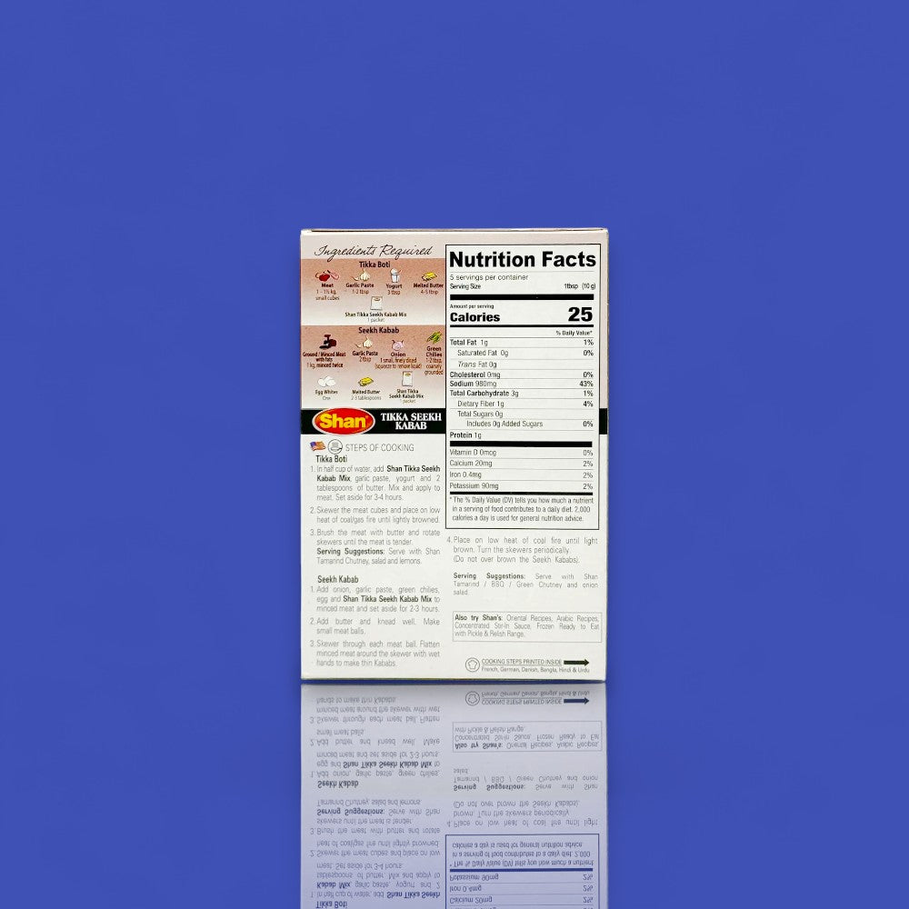 Shan Tikka Seekh Kabab Mix (50 g) brings the smoky, mouthwatering essence of traditional barbecue right to your kitchen. Crafted with a fiery blend of paprika, cumin, chili, and black pepper, it helps you create perfectly spiced, juicy kababs that grill to golden perfection bold, flavorful, and authentically desi.